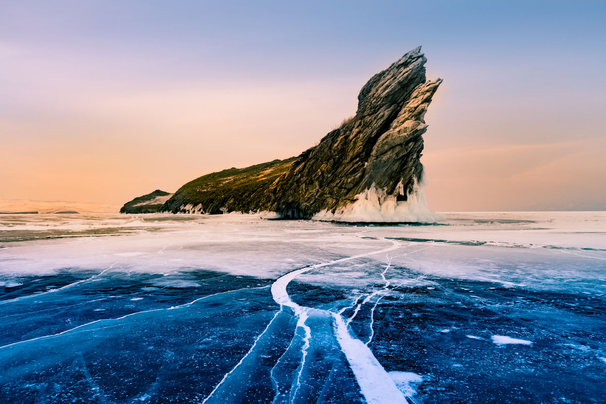 Зимний Байкал – кристальный лёд, трещины и пузырьки под ногами, ледяные гроты и магия настоящей сибирской зимы.